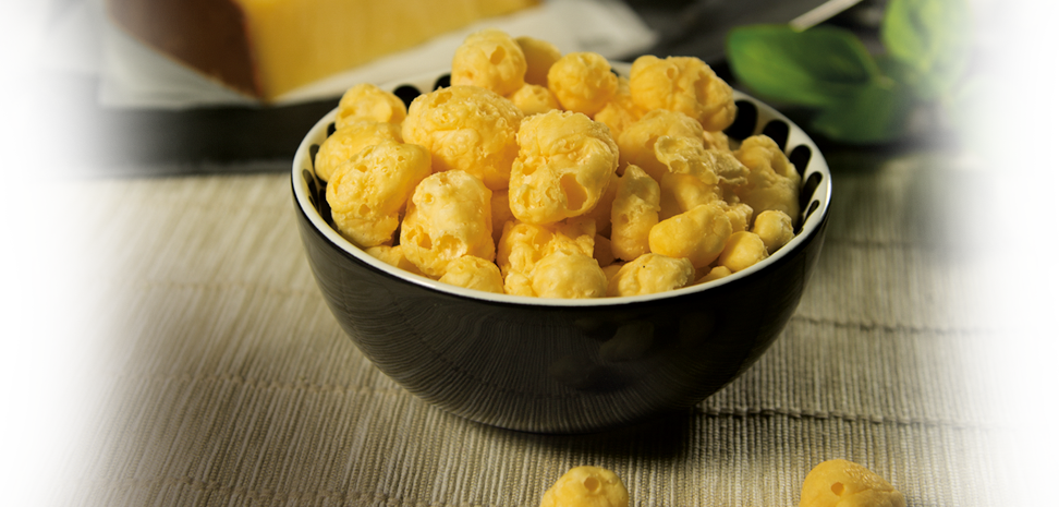 Laat je verrassen door Cruncheese knabbels en alle vijf haar verschillende smaakexplosies.